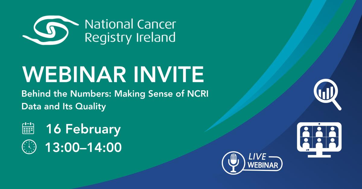 The National Cancer Registry of Ireland (NCRI) is pleased to invite you to our upcoming webinar, Behind the Numbers: Making Sense of NCRI Data and Its Quality, taking place on 16 February from 1:00–2:00 PM.