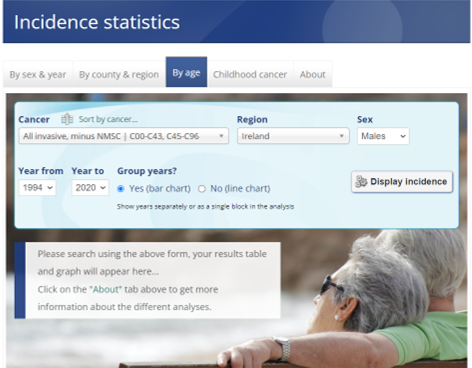 The Registry's online cancer incidence system has been updated to include the year 2021. The years shown now range from 1994 (the date of the foundation of the National Cancer Registry) to 2021 (the latest available complete data). The online cancer incidence system allows users to generate customised tables and charts by sex & year, by county & region, and by age, as well generating statistics on childhood cancer. These statistics can then be viewed and exported.