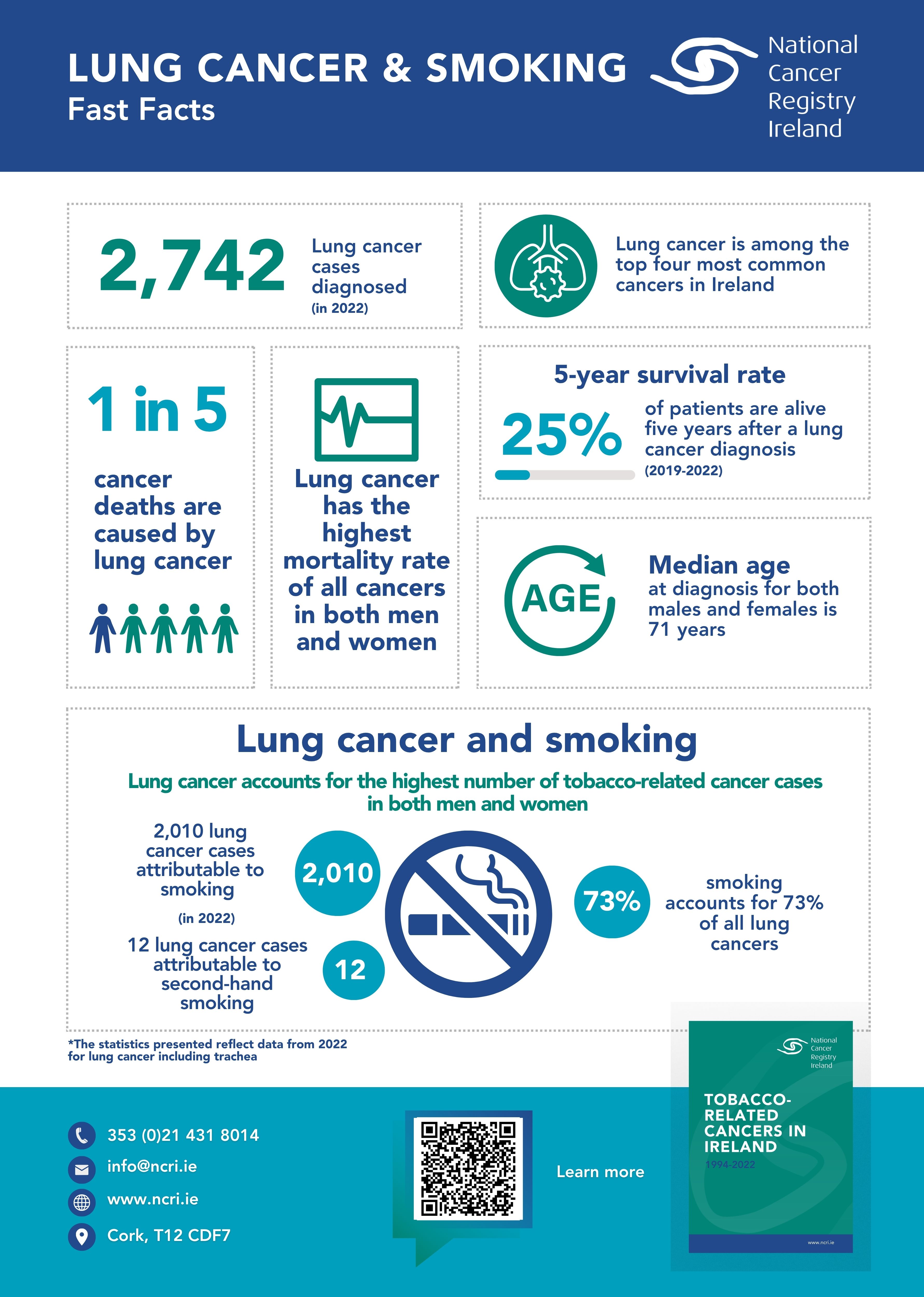 - 1 in 5 cancer deaths are caused by lung cancer